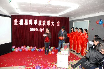 隨后的頒獎儀式上,總經(jīng)理室成員陳宏春(總經(jīng)理)、成國榮(總經(jīng)理助理)分別為冠軍團隊和個人頒發(fā)獎項,冠軍獲得者陳劉珍、胥蘭花、嚴明各自發(fā)表了熱情洋溢的獲獎感言。隨后,公司管理層分別為其他獲獎者頒發(fā)獎項。期間,公司文藝隊生動活潑的表演,贏來陣陣喝彩。