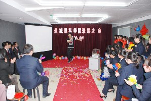 大會分三幕進行,第一幕由陳總致辭,陳總首先通報了公司在Q1季度取得的各項成績,肯定了諸部門的工作結(jié)果,表揚了在Q1季度取得突出成績的部門和個人。陳總指出:思科是年輕的公司,是年輕人的公司,公司將建立“輔導員體系”幫助員工成長,幫助員工成長是給員工最好的福利。最后陳總對Q2季度的工作提出了要求,并鼓勵全體員工時刻以目標為指南針,以結(jié)果為方向盤,努力完成公司既定目標。