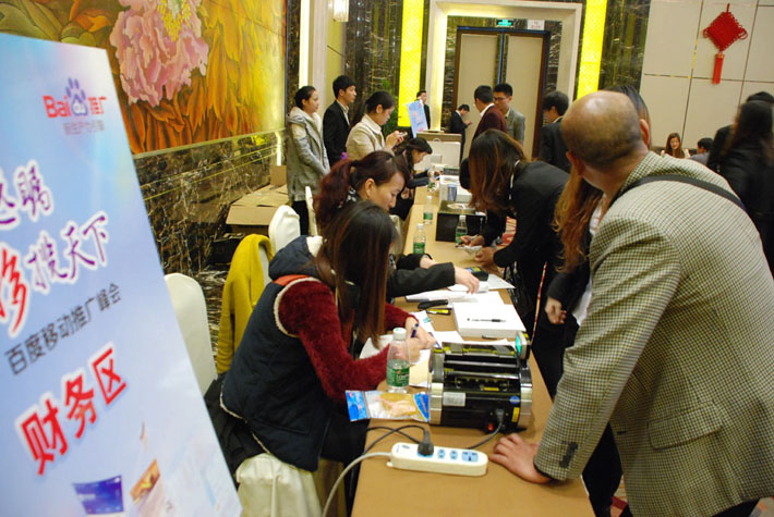現(xiàn)場企業(yè)家向工作人員咨詢百度移動(dòng)搜索推廣